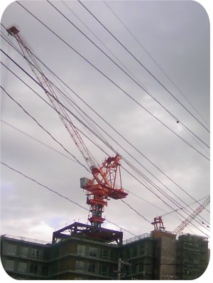 巨大なクレーンがおおぜいの人足を飲み込んで行く