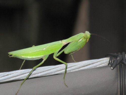 いつの間にか秋になっていました、裏の電線にカマキリが散歩していたので撮ってみました、カマキリって