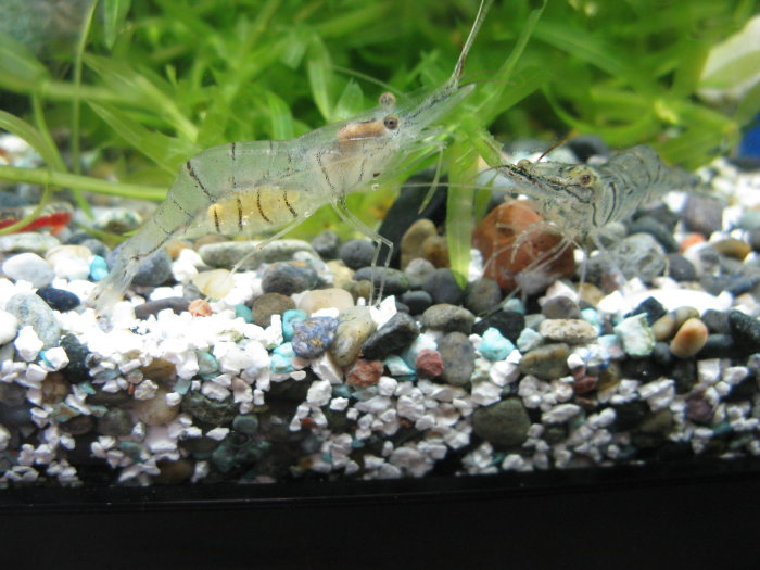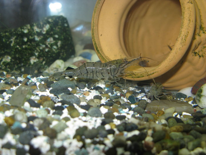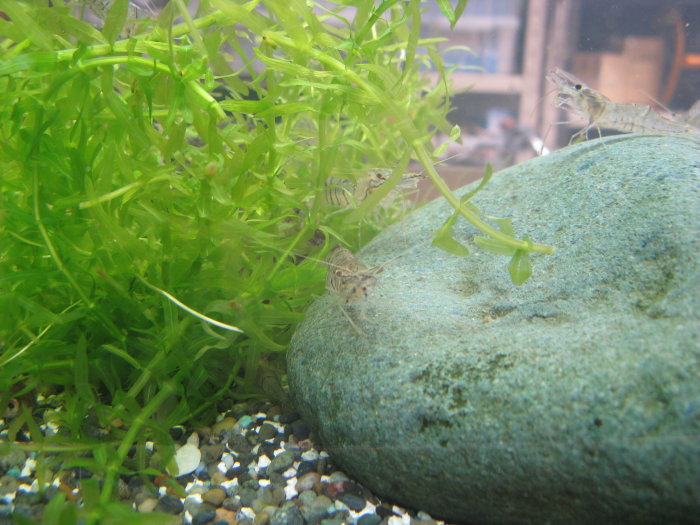 水槽の中を数えたらエビ君は40数匹いました、中には抱卵しているエビも4~5匹います