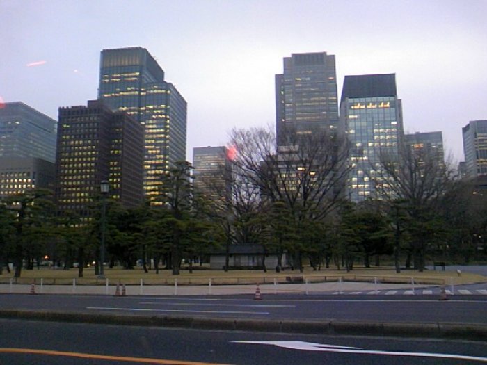 夕方の内堀通りから東京駅方向のビル ここら辺っていつも外国っぽいと思っているのは私でけでしょうか?